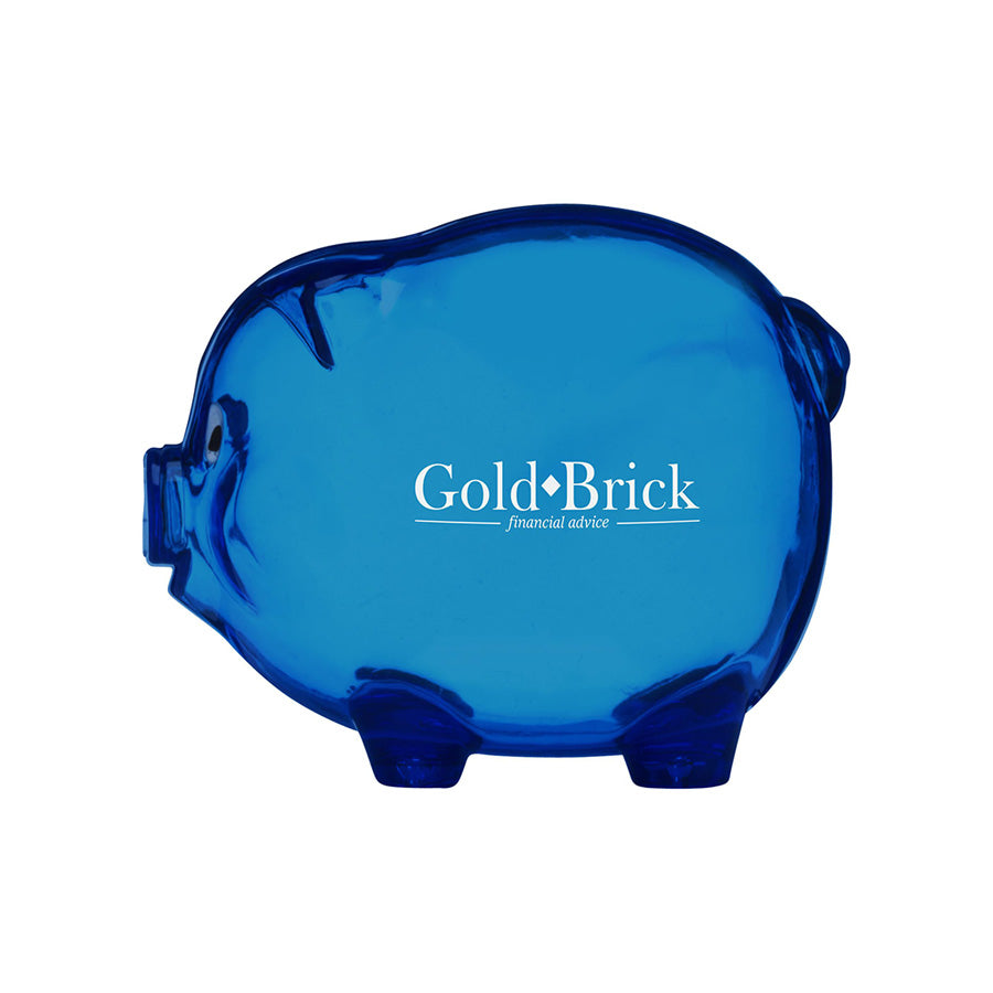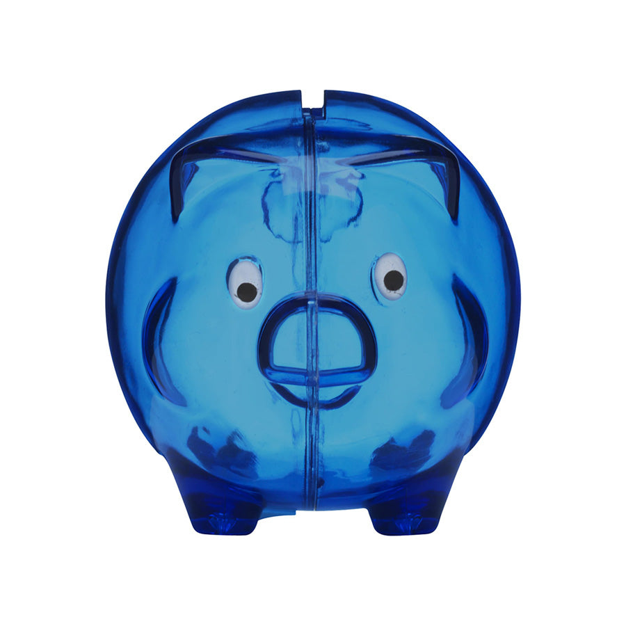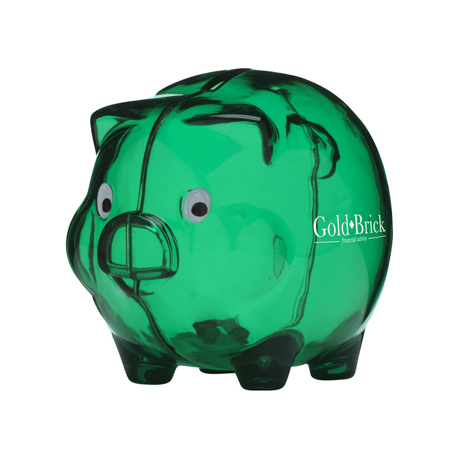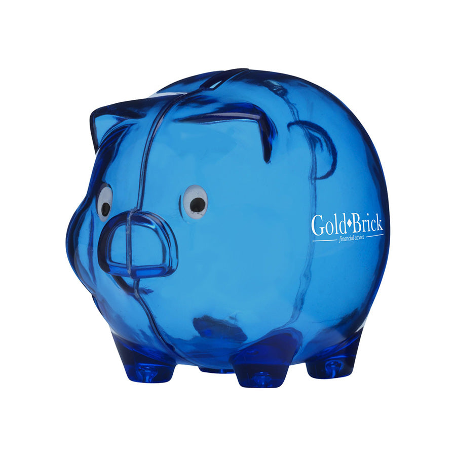 Novelty clear piggy bank, perfect for all promotional campaigns especially for banks, building societies etc.